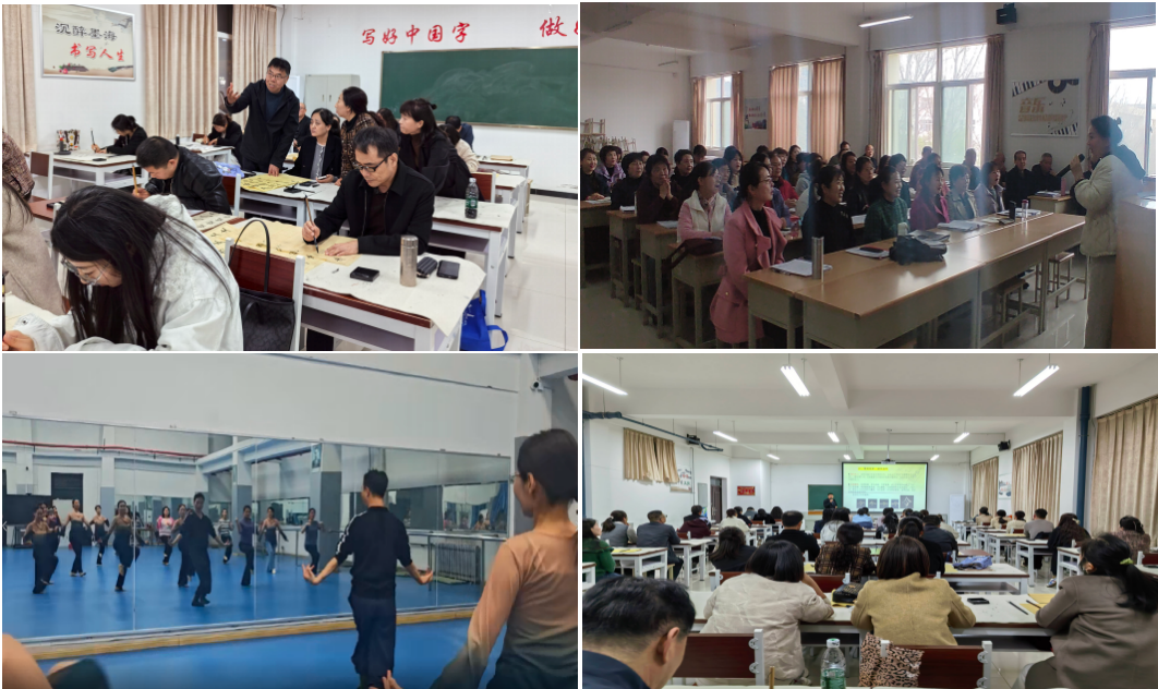 开课首日,各专业教室均满员。国画班特邀国家一级美术师、铜川书画院院长赵清、国家二级美术师王萧东教学指导,主讲教师杨啸锋从笔墨纸砚的选用讲起,讲解写意花鸟技法;书法班由中国书法家协会会员、铜川市书协副主席张铜峰老师和陕西省书协会员张增锋老师主讲,学员研习运笔方法和间架结构;古典舞班学员跟随主讲教师刘陶的口令练习基础动作,配合古典乐曲完成形体训练;声乐班学员在教师张锦指导下练习发声技巧,演唱经典曲目;形体班主讲教师王华带领学员进行科学拉伸训练,帮助改善体态。